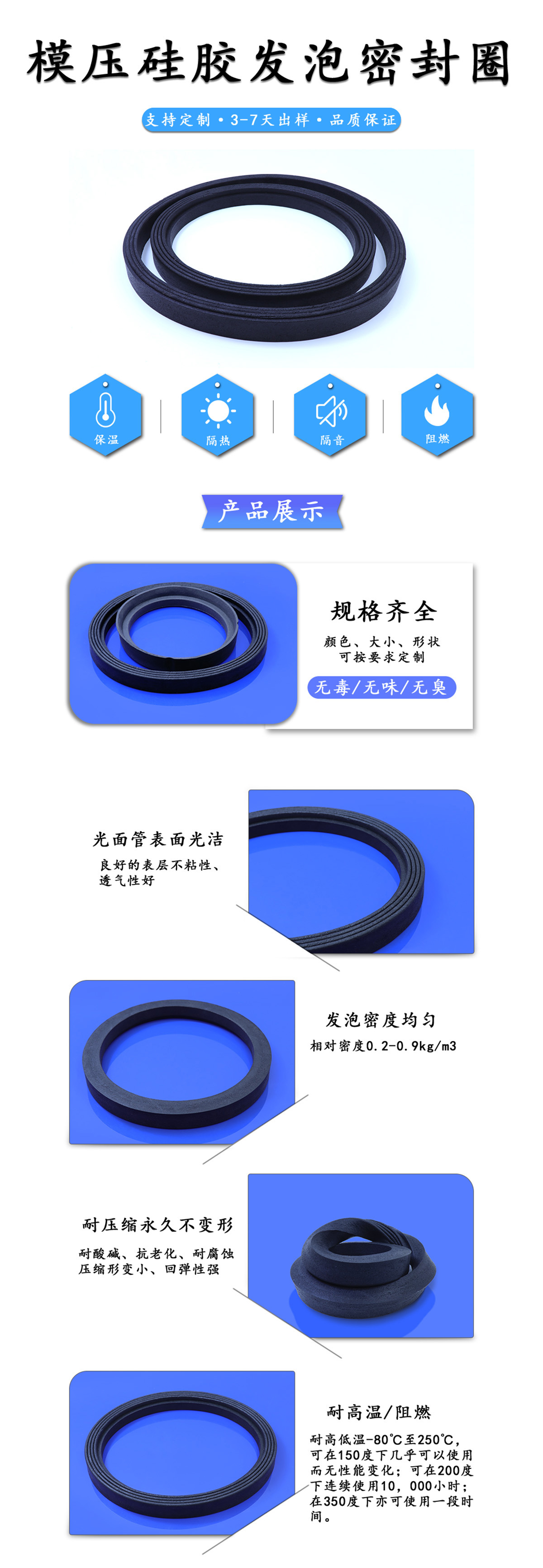 模壓硅膠發泡密封圈: 采用優質硅膠原料制作,安全無毒無味、顏色、大小、形狀可按要求定制