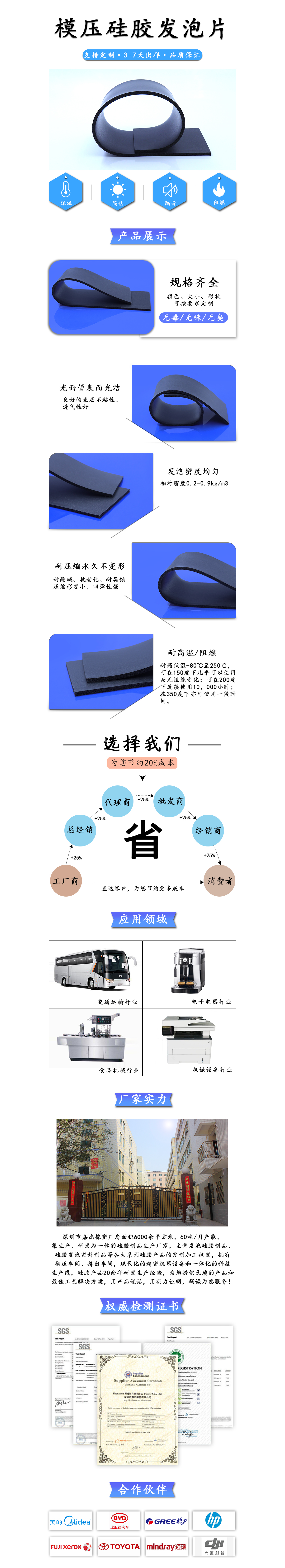 模壓硅膠發泡片: 采用優質硅膠原料制作,安全無毒無味、顏色、大小、形狀可按要求定制