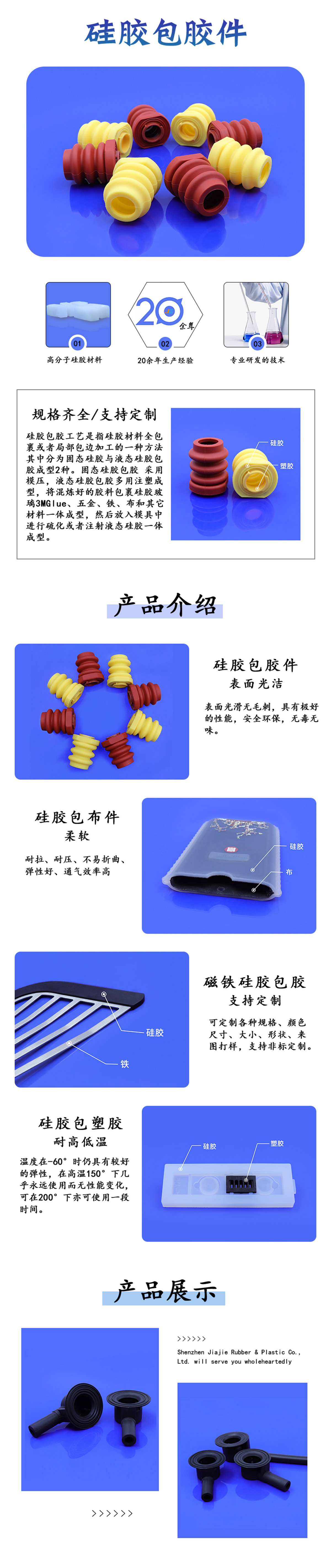 硅膠包膠件: 采用優質硅膠原料制作,安全無毒無味、顏色、大小、形狀可按要求定制