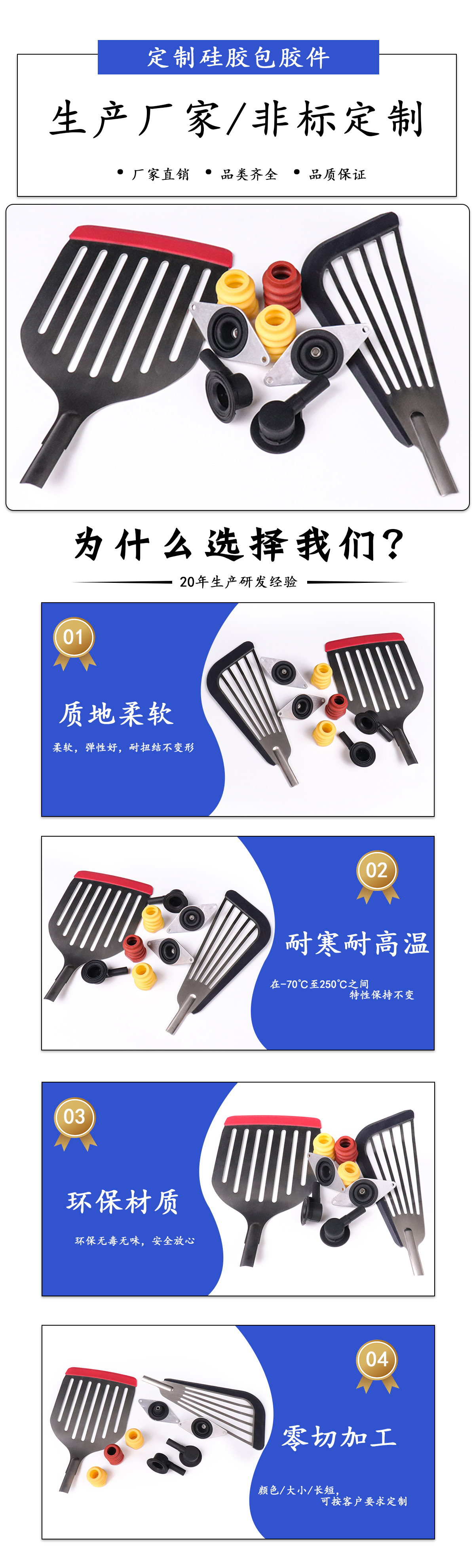 定制硅膠包膠件性能: